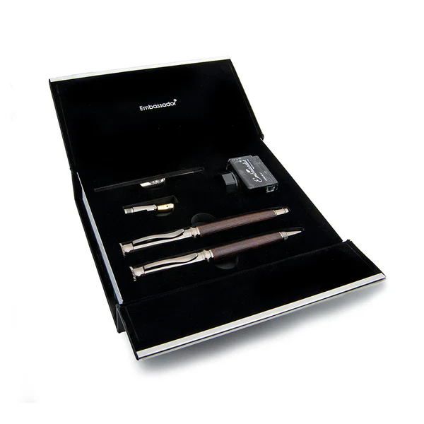 Discover refined craftsmanship and elegant design with the Embassador World Map Fountain Pen & Ball Pen Set. Engineered for precision and style, this premium writing set offers ultra-smooth, low-viscosity oil-based ink for a flawless writing experience.