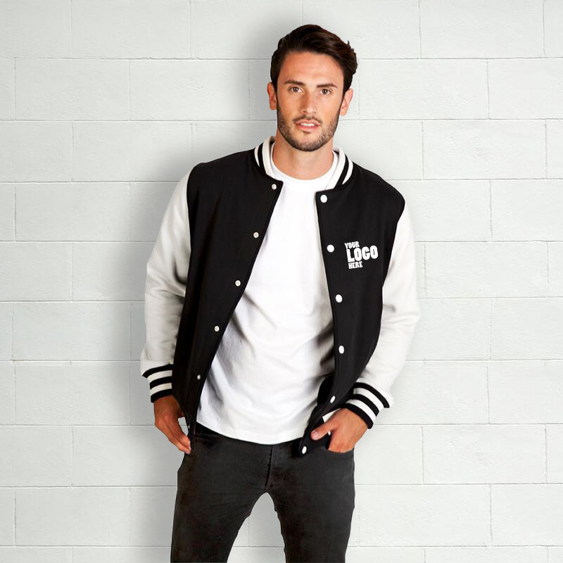 This branded varsity jacket is a great choice for corporate gifts, new year gifts, winter gifts, merchandise, and promotional apparel.